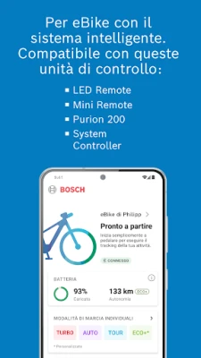 Trasforma la tua esperienza in sella con **eBike Flow**, l'alleato indispensabile per ogni ciclista moderno. Quest'applicazione è il cuore pulsante del sistema smart Bosch, progettata per elevare la tua eBike a un nuovo livello di intelligenza, connettività e protezione. Con **eBike Flow**, la tua bici elettrica non sarà mai obsoleta, grazie agli aggiornamenti costanti che introducono funzionalità all'avanguardia direttamente sul tuo dispositivo, garantendo che tu abbia sempre il massimo controllo e accesso alle ultime innovazioni.