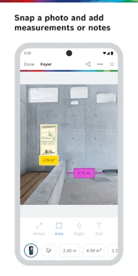MeasureOn di Bosch Measuring Tools semplifica la documentazione in cantiere. Raccogli facilmente disegni in pianta, misurazioni, foto e note, salvando tutte le informazioni essenziali in un unico posto per la massima efficienza.