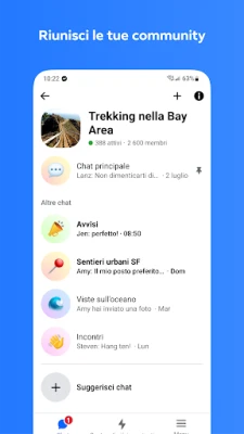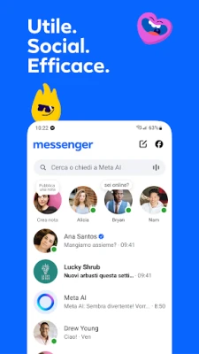 Connettiti con amici e familiari, esplora interessi e crea community con Messenger. L'app gratuita che ti permette di restare in contatto con chi vuoi e condividere il tuo stato d'animo, ovunque tu sia.