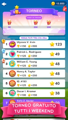 Per chi ama la competizione, i Tornei gratuiti ogni fine settimana sono l'occasione perfetta per dimostrare il proprio talento. Scala le classifiche e conquista ricompense esclusive misurandoti con altri appassionati in un'emozionante caccia alle parole. Gioca a Parole Intrecciate 2 - Puzzle ovunque tu sia, anche senza connessione Wi-Fi o internet, e goditi un passatempo che non solo diverte, ma migliora anche le tue capacità di osservazione, ortografia e il tuo QI lessicale. Che tu sia un veterano dei cruciverba o un neofita dei giochi di parole, ti innamorerai di questa sfida avvincente.